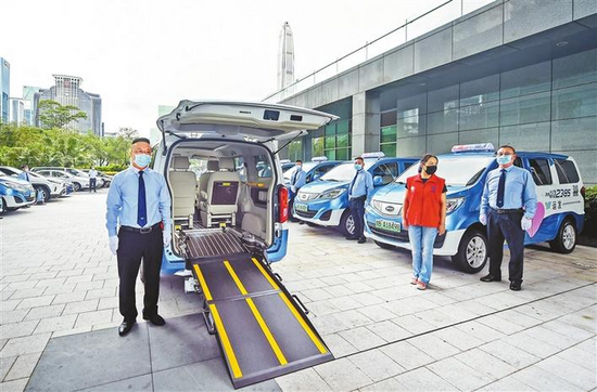 除了地鐵方面的交通設(shè)施,深圳目前也投放了60臺無障礙出租車,無障礙出租車擁有上下車輔助電動踏板、輪椅固定裝置等無障礙附屬設(shè)施。有需求的人士可提前12小時進(jìn)行用車預(yù)約。