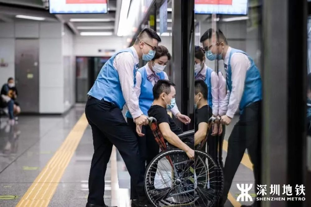 深圳地鐵增設(shè)了盲道、輪椅坡道、無障礙公廁、無障礙垂直電梯、無障礙專用通道、電子顯示屏、殘疾人導(dǎo)向標(biāo)識等各種無障礙設(shè)施,并在車廂內(nèi)設(shè)置了語言報站系統(tǒng)和圖文顯示系統(tǒng),在每節(jié)車廂里也專門增加了輪椅位。
