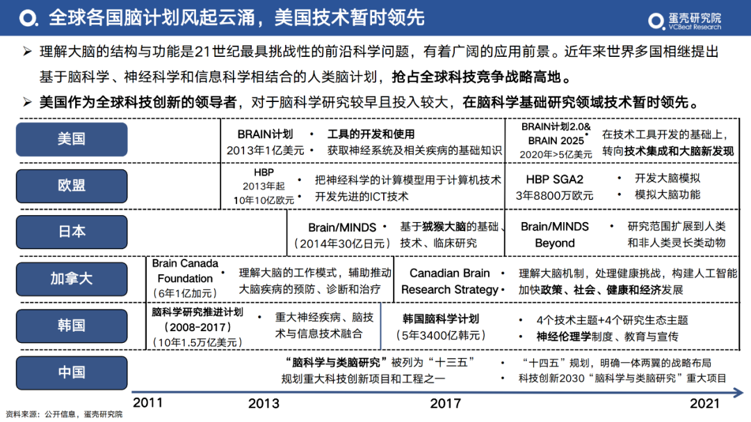 1.1 全球各國(guó)腦計(jì)劃風(fēng)起云涌,美國(guó)技術(shù)暫時(shí)領(lǐng)先