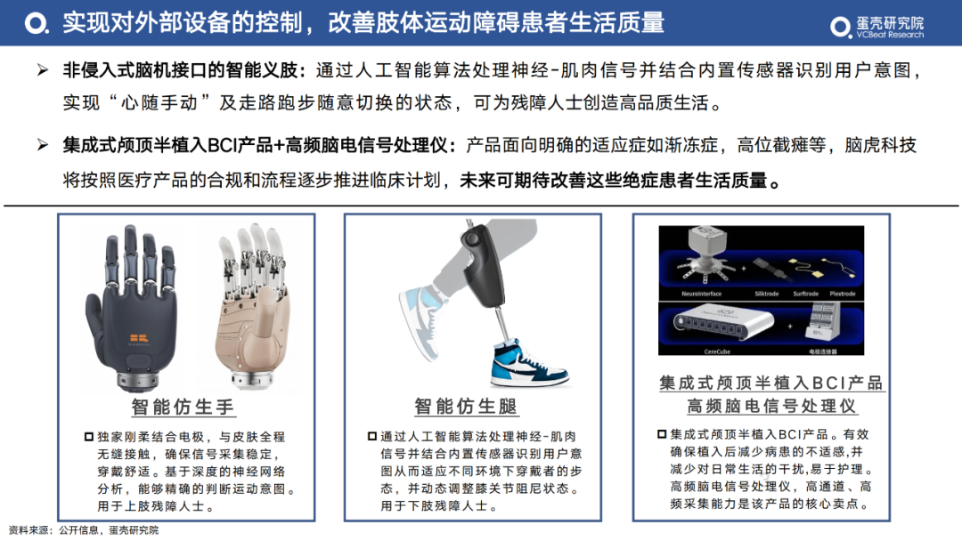 集成式顱頂半植入BCI產(chǎn)品+高頻腦電信號(hào)處理儀:產(chǎn)品面向明確的適應(yīng)癥如漸凍癥,高位截癱等,腦虎科技將按照醫(yī)療產(chǎn)品的合規(guī)和流程逐步推進(jìn)臨床計(jì)劃,未來(lái)可期待改善這些絕癥患者生活質(zhì)量。