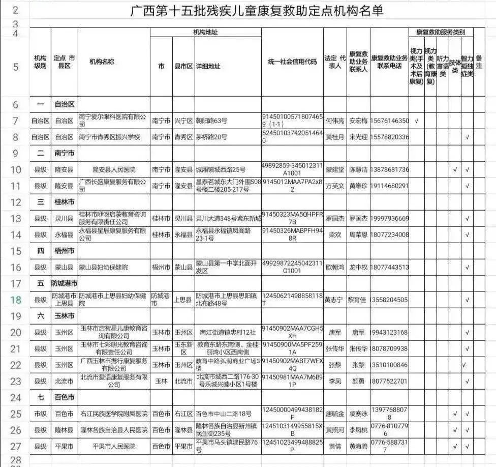 2月22日,記者從廣西壯族自治區(qū)殘疾人聯(lián)合會了解到,根據(jù)《廣西殘疾兒童康復救助制度建設工作領導小組辦公室關于公布第十五批殘疾兒童康復救助定點機構的通知》,廣西有15家機構榜上有名,其中2家機構獲批自治區(qū)級殘疾兒童康復救助定點機構。