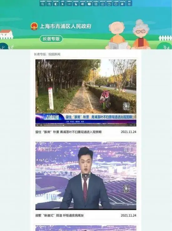對“上海青浦”政府網(wǎng)站各層頁面進行適配改造,為老年人、殘疾人提供更簡潔的頁面、更大的字體、更便捷的操作方式。同時,還提供語音播放功能,目前支持普通話版本和滬語版本。