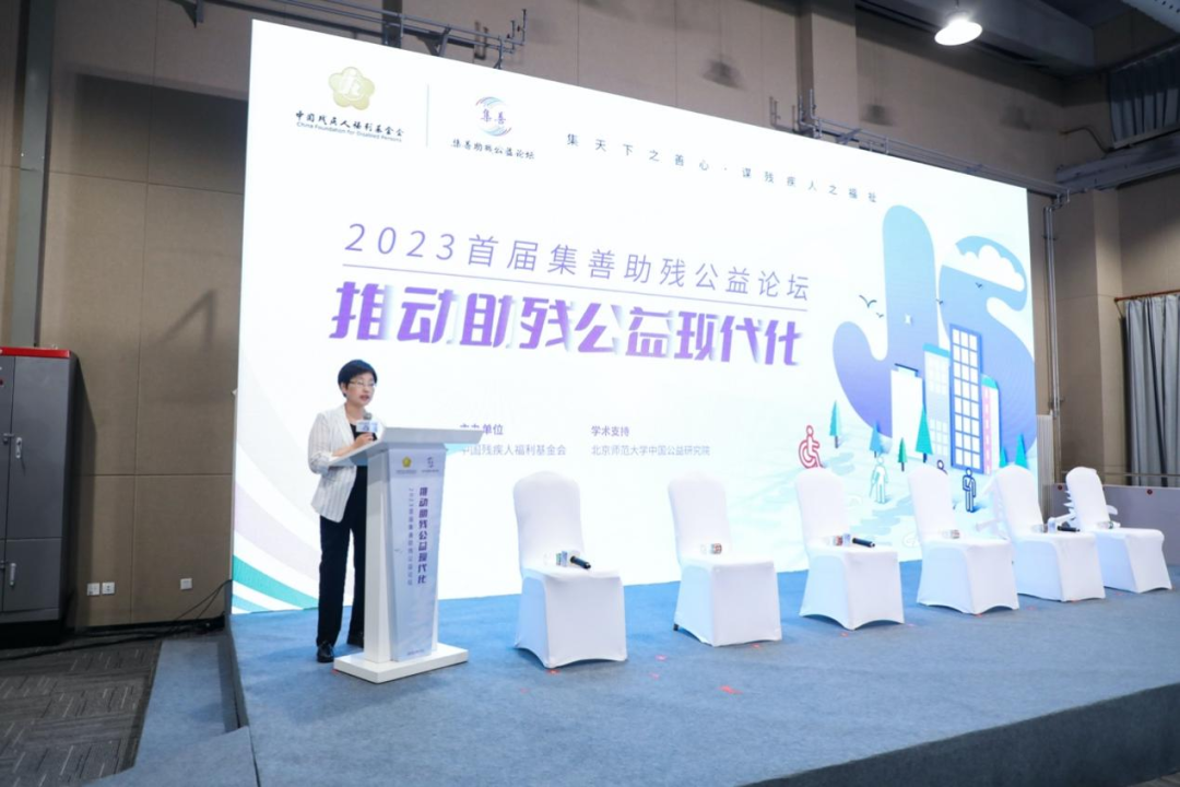 (中國殘疾人福利基金會(huì)副理事長兼秘書長周麗君主持首屆集善助殘公益論壇)