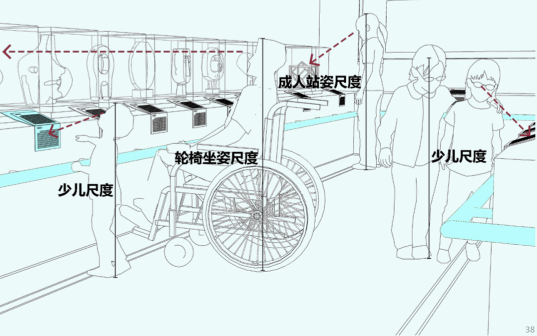 在公共建筑無障礙方面,《規(guī)劃》要求公共建筑應(yīng)有低位服務(wù)設(shè)施:為公眾提供服務(wù)的各類服務(wù)臺均應(yīng)設(shè)置低位服務(wù)設(shè)施,包括問詢臺、接待處、業(yè)務(wù)臺、收銀臺、借閱臺、行李托運臺等。當(dāng)設(shè)置飲水機、自動取款機、自動售票機、自動販賣機等時,每個區(qū)域的不同類型設(shè)施應(yīng)至少有1臺為低位服務(wù)設(shè)施。低位服務(wù)設(shè)施前應(yīng)留有輪椅回轉(zhuǎn)空間。