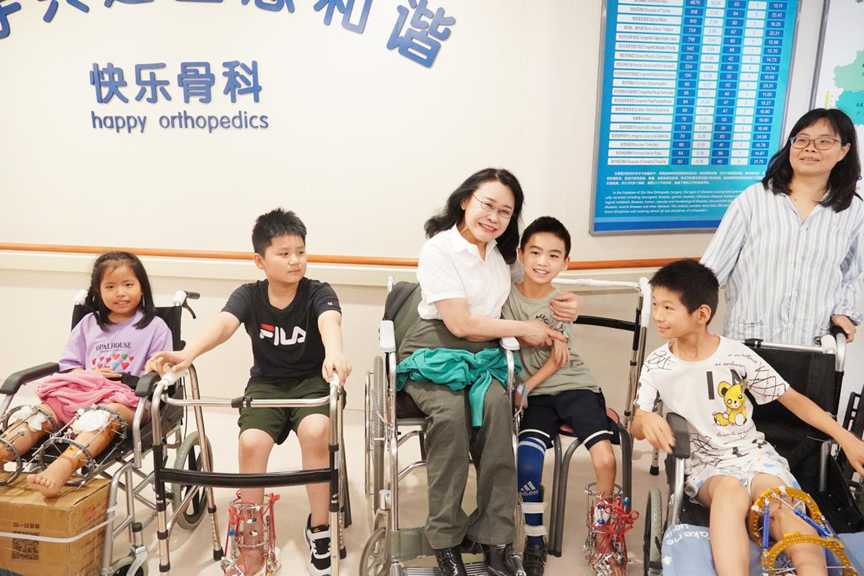 圖為張海迪慰問正在術(shù)后康復的孩子們