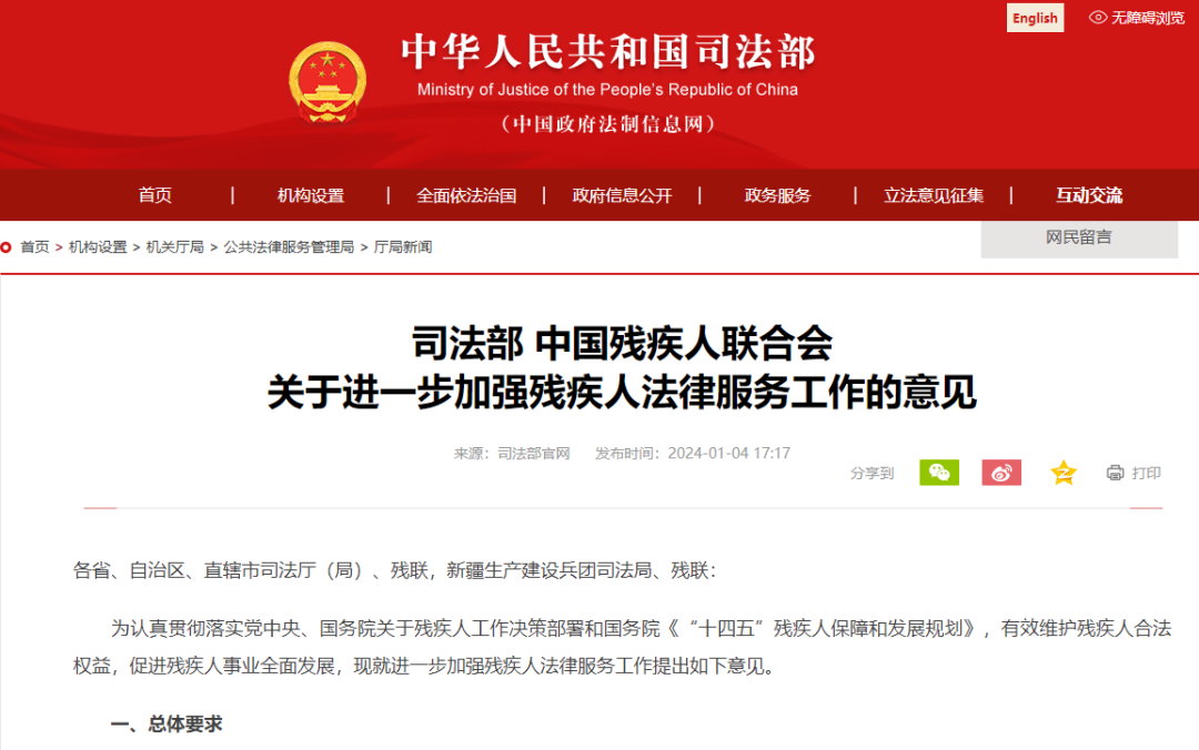 司法部 中國(guó)殘聯(lián)聯(lián)合印發(fā)意見(jiàn)