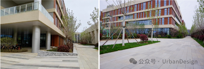 建筑無障礙出入口是校園無障礙路徑和建筑樓棟的重要銜接點 [4]。建筑組團之間通過無障礙緩坡地形連接(圖 10),保證通行順暢。