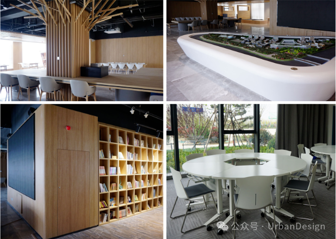建筑室內(nèi)柱子全部圓角設(shè)計,設(shè)置低位服務臺和容膝空間,門廳設(shè)置無障礙休息區(qū),并提供帶有助力扶手和靠背的休息座椅,設(shè)置輪椅停放(租借)區(qū)以及試聽輔助設(shè)備。