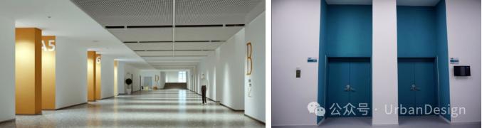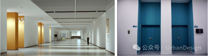 室內(nèi)通過色彩變化進行功能分區(qū),標識采用大字體和高對比度形式(圖 14)。