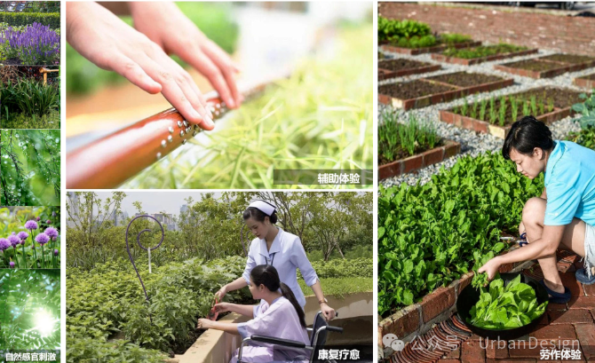 康復大學校園包容性設(shè)計中注重人的心理感受,充分發(fā)揮康復學科的特點,利用康復醫(yī)學、康復景觀學等相關(guān)理論,借助場地、空間與陽光、空氣、植物、土地的相互作用,采用園藝療法等療愈手段,利用植物栽培與園藝操作活動幫助有需要人士從其社會、教育、心理以及身體諸方面進行調(diào)整更新(圖 20)。