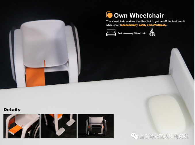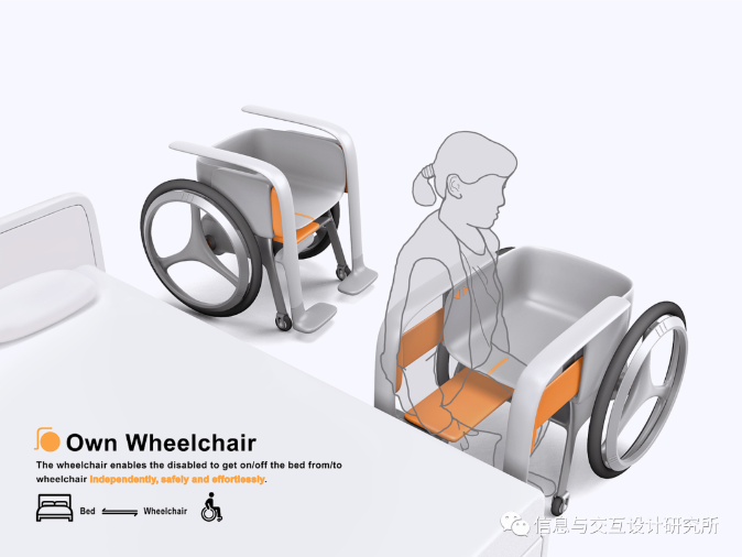 腿部殘疾人士在使用輪椅的過程中,上下床是一個很不方便的過程,一般需要其他人或輔助工具的幫助來完成,如果獨自上下床,則存在摔倒的危險。Own-Wheelchair無障礙過床輪椅專為腿部殘疾人士設(shè)計,幫助他們在使用輪椅時能夠獨自、安全、省力地上下床。
