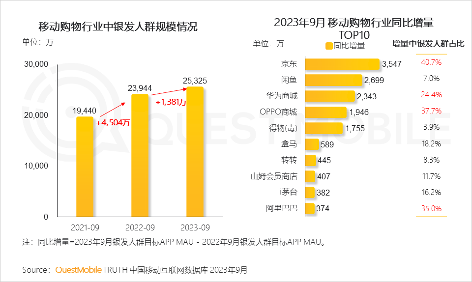 2、近一年以來在線上購物領(lǐng)域,銀發(fā)人群對行業(yè)的使用規(guī)模增量超千萬,并為京東、華為商城、OPPO商城以及阿里巴巴等購物平臺提供2成以上的增量占比。