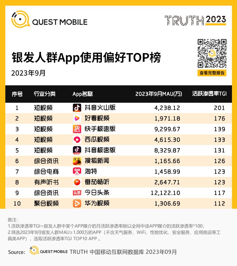銀發(fā)人群App使用偏好TOP榜