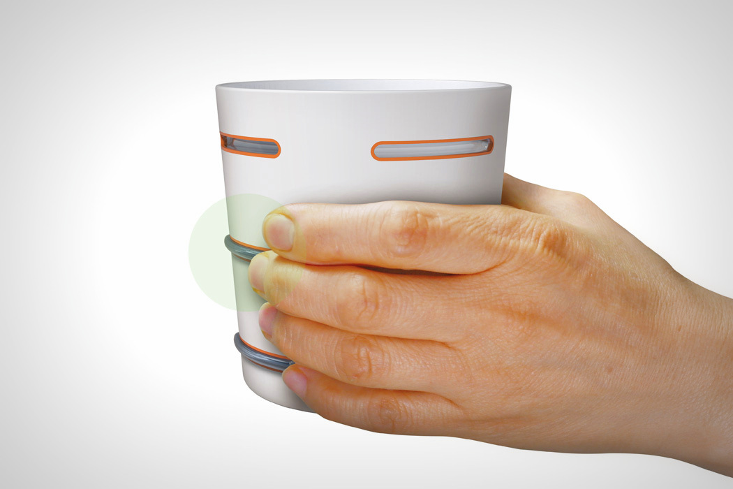 “感覺杯”是為視覺障礙的人群設(shè)計的,讓他們通過觸覺可以知道的水量,視障人士每次嘗試喝水時都會面臨尷尬和困難的情況。例如,當(dāng)他們往杯子里倒水時他們很難估計杯子里有多少水,當(dāng)把杯子放在桌子上時,杯子里還剩多少水。
