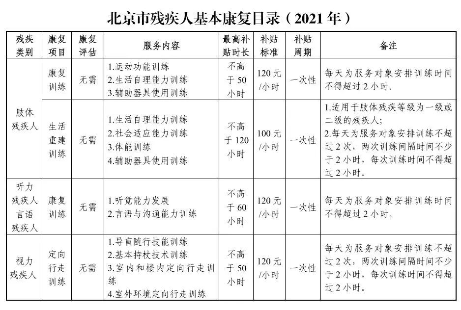 北京市康復(fù)補(bǔ)貼目前依據(jù)《北京市殘疾人基本康復(fù)目錄(2021年)》來執(zhí)行,具有北京市戶籍,持有《中華人民共和國(guó)殘疾人證》,年齡在16周歲及以上的殘疾人申請(qǐng)目錄》中的康復(fù)服務(wù)項(xiàng)目,可享受補(bǔ)貼。