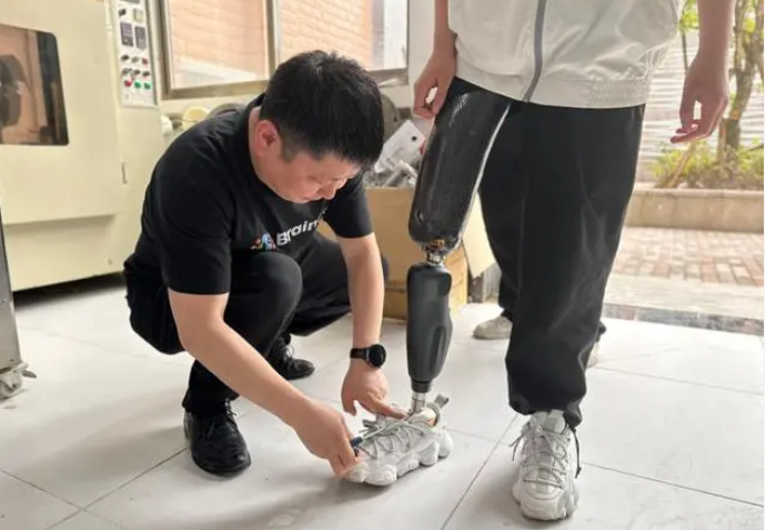 近日,在貴州省康復(fù)醫(yī)院“科技改變生活·輔具支撐夢(mèng)想——優(yōu)秀殘疾人代表智能假肢裝配公益活動(dòng)”現(xiàn)場,貴州省殘疾人游泳隊(duì)隊(duì)員陳潔在工作人員的幫助下穿上了新適配的智能仿生假肢,開始了適應(yīng)訓(xùn)練。據(jù)了解,本次公益活動(dòng)是該醫(yī)院2023年度假肢矯形器裝配康復(fù)救助項(xiàng)目的一部分,計(jì)劃讓14位優(yōu)秀殘疾人通過適配智能仿生假肢,獲得更為強(qiáng)大的生活能力與職業(yè)潛能。