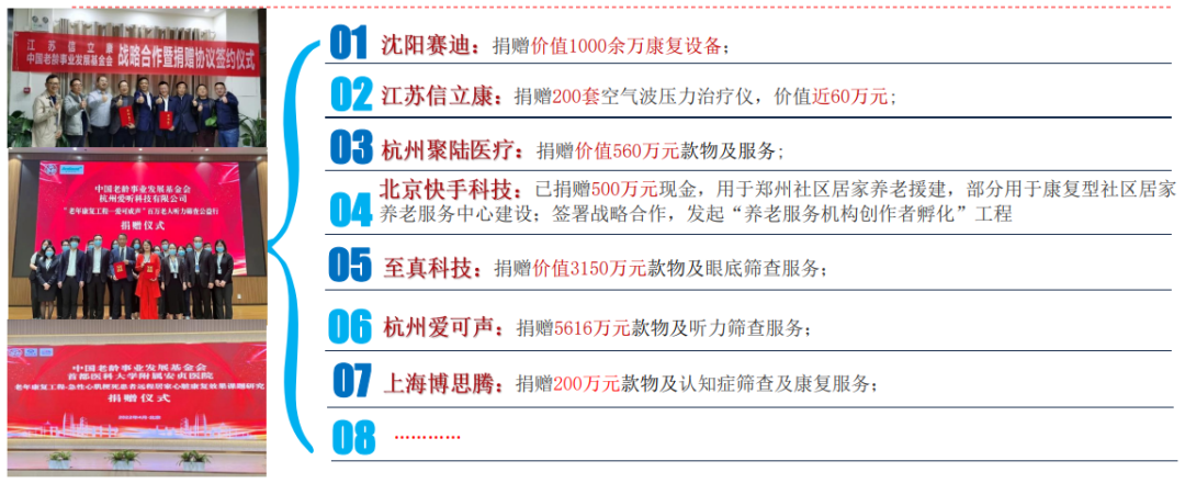 1.線下募捐:北京快手科技、上海興動(dòng)實(shí)業(yè)、杭州聚陸醫(yī)療、北京至真健康、上海博斯騰、杭州愛(ài)聽(tīng)等多家愛(ài)心企業(yè)積極捐贈(zèng)。截止2023年,完成1.63億(分三至五年實(shí)施)。