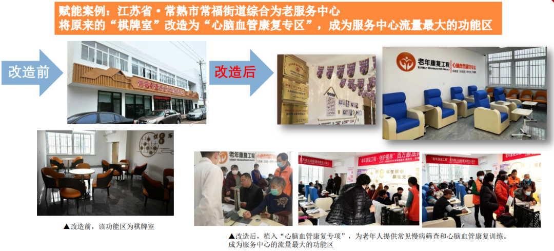 3.建設(shè)情況:截至目前,老年康復(fù)工程在全國(guó)共建設(shè)39家康復(fù)專項(xiàng)基地;超過(guò)400家養(yǎng)老服務(wù)機(jī)構(gòu)已啟動(dòng)慢病篩查公益活動(dòng)。