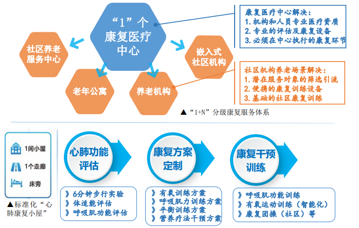 何謂心肺康復(fù)“1+N”模式??jī)H需“1間小屋+1個(gè)走廊+床旁”(心肺康復(fù)小屋),依托“1”個(gè)康復(fù)醫(yī)療中心,就可快速覆蓋“N個(gè)”養(yǎng)老服務(wù)機(jī)構(gòu)。機(jī)構(gòu)申請(qǐng)?jiān)搶m?xiàng),可獲得”心肺康復(fù)小屋”的標(biāo)準(zhǔn)化建設(shè)支持、技術(shù)和人才培養(yǎng)支持。