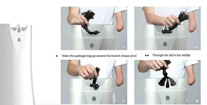 為殘疾人設(shè)計(jì)的單手垃圾桶,可以單手輕松包扎好垃圾袋,讓少部分人的需求得到滿(mǎn)足,并且注重設(shè)計(jì)的美觀(guān)和耐用性。