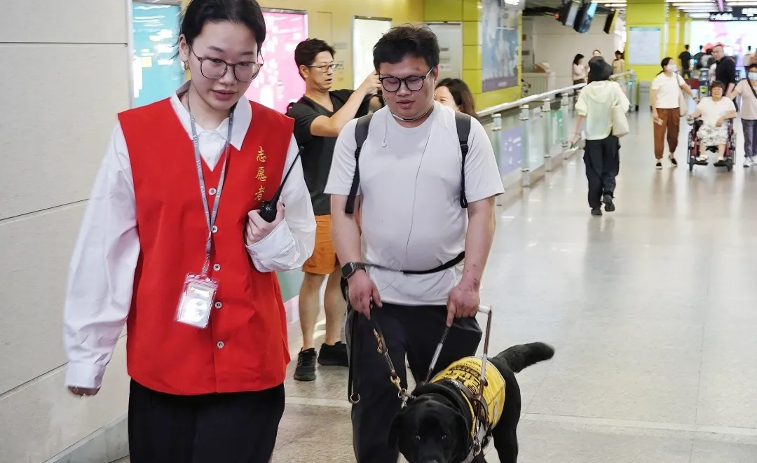 導盲犬作為服務犬可陪同進站。圖源:廣州殘聯(lián)