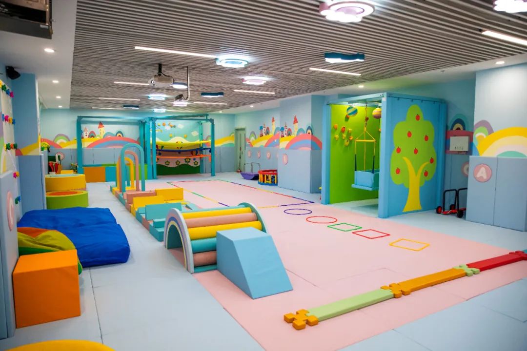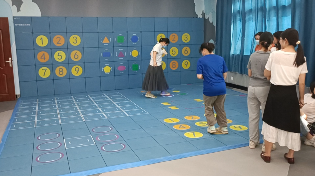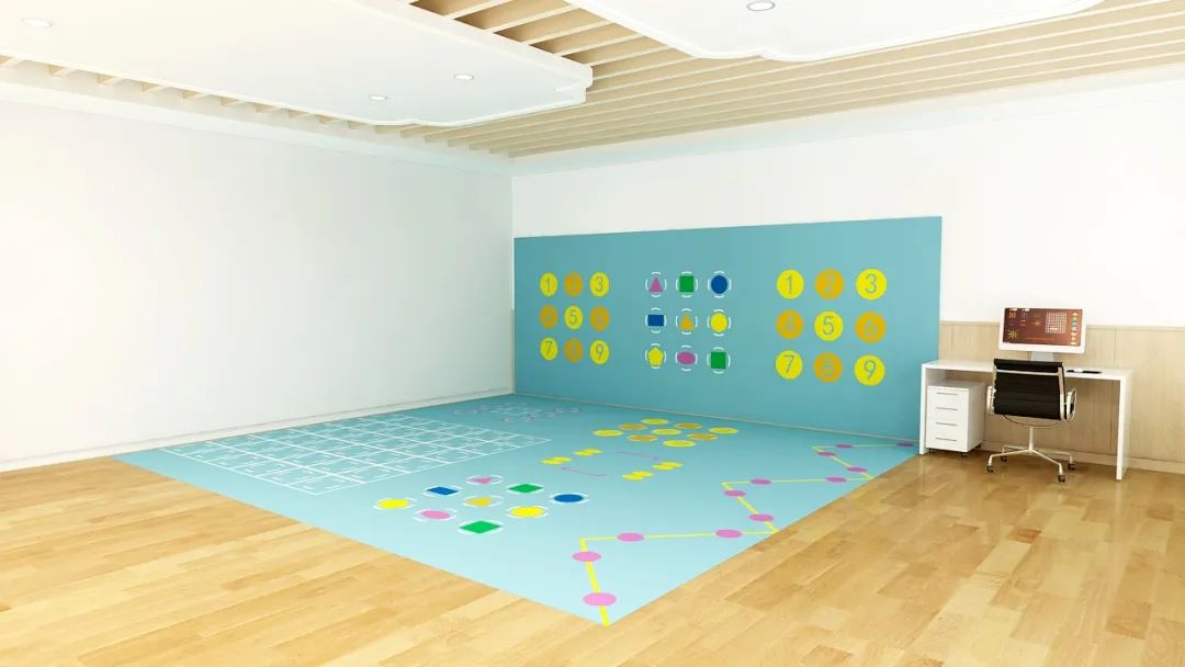 數(shù)字全景運(yùn)動系統(tǒng)采用模塊化設(shè)計,最大可安裝48㎡;包含9種不同的訓(xùn)練圖案和300余個訓(xùn)練課程;可搭配小球、踏板、敲擊棒等傳統(tǒng)感統(tǒng)教具,進(jìn)行操作性技能訓(xùn)練,形式豐富多樣,根據(jù)兒童需求組合使用靈活性更強(qiáng);同時系統(tǒng)內(nèi)還包含數(shù)據(jù)保存和自定義功能,教師可根據(jù)兒童具體情況建立具有針對性的訓(xùn)練課程。