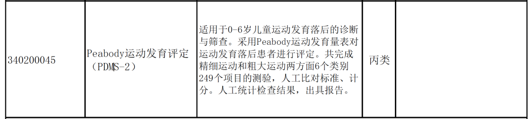 河南也將構(gòu)音障礙、職業(yè)能力評(píng)定、職業(yè)功能訓(xùn)練等放進(jìn)了基本醫(yī)保的康復(fù)類目錄。同時(shí)將Peabody運(yùn)動(dòng)發(fā)育評(píng)定也納入了醫(yī)保。