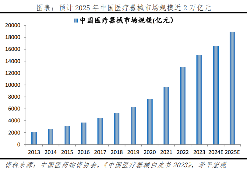 老齡化來臨,醫(yī)保體制日益健全,人均醫(yī)療保健消費支出和衛(wèi)生費用保持增長,眼科、心血管、骨科、口腔等醫(yī)療器械迎來機遇。在國家產(chǎn)業(yè)政策的支持和醫(yī)療衛(wèi)生體制改革的推動下,醫(yī)療器械行業(yè)呈現(xiàn)出長期穩(wěn)定增長的需求趨勢。據(jù)中國醫(yī)藥物資協(xié)會數(shù)據(jù),2022年中國醫(yī)療器械行業(yè)的市場規(guī)模約為1.3萬億元,預(yù)計到2025年將接近2萬億元。醫(yī)療器械行業(yè)中游細分產(chǎn)品包括高端植介入耗材、低端醫(yī)用耗材、醫(yī)療設(shè)備和體內(nèi)診斷等。隨著老齡化到來、醫(yī)保體制日益健全、人均醫(yī)療保健消費支出和衛(wèi)生費用保持快速增長等,眼科、心血管耗材、骨科、口腔耗材等與中老年息息相關(guān)的醫(yī)療器械迎來新機遇。具體來看: