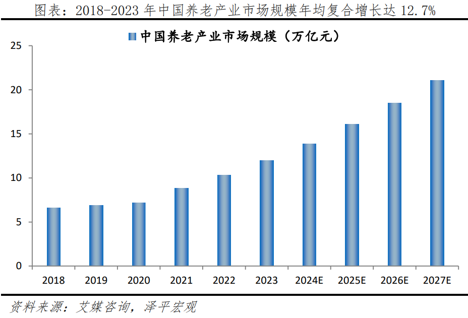 4)財富水平提升,“60”后富起來的一代逐漸步入老年,隨著代際更替和生活環(huán)境變化,老齡人口整體消費意愿提升。根據(jù)社會學(xué)理論,個人價值觀會受到社會環(huán)境的影響。伴隨著我國經(jīng)濟社會的發(fā)展,不同時代老年人成長背景不同,形成不同的價值觀念和消費觀念,40、50后是站起來的一代,60、70后是富起來的一代,80、90后是強起來的一代。其中,40、50后成長在新中國剛成立的年代,物資相對缺乏,形成吃苦耐勞、簡樸節(jié)約的生活習(xí)慣;60、70后成長在改革開放的紅利期,社保逐漸完善,收入充足、財富積累,且擁有更好的身體狀態(tài);80、90后成長在中國經(jīng)濟高速增長的時代,互聯(lián)網(wǎng)普及、5G興起,物質(zhì)相對富裕。數(shù)據(jù)顯示,1978-2023年,中國城鎮(zhèn)居民恩格爾系數(shù)從57.5%降至28.8%,農(nóng)村居民恩格爾系數(shù)從67.7%降至32.4%。根據(jù)民政部、全國老齡辦發(fā)布的《2023年度國家老齡事業(yè)發(fā)展公報》,2023年60歲及以上老人的人均財富儲備約26.4萬元。