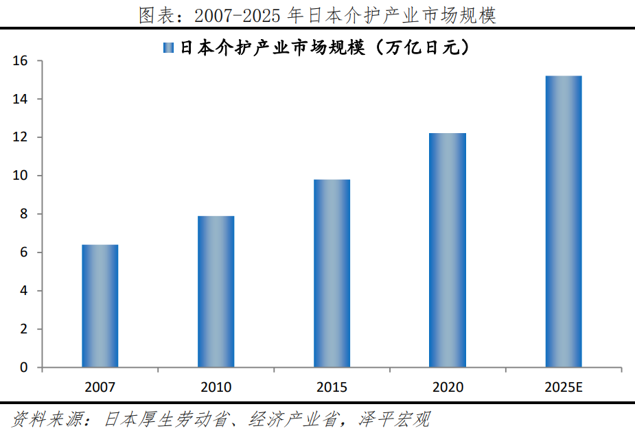 1)護理產(chǎn)業(yè)方面,日本介護市場規(guī)模持續(xù)快速增長,在《介護保險》支持下,老年人介護產(chǎn)業(yè)呈現(xiàn)出高度標準化、多樣化和個性化的發(fā)展特征。2007-2025年,平均年增長率在8%左右,遠高于同期老年人口平均增長率(約2%)。老年人介護產(chǎn)業(yè)依托補貼與護理保險報銷政策,滿足全層次老年人個性化需求。SOMPO Care(日本財產(chǎn)保險公司)提供服務(wù)涵蓋機構(gòu)養(yǎng)老、居家護理和日間護理,覆蓋多樣化護理場景。