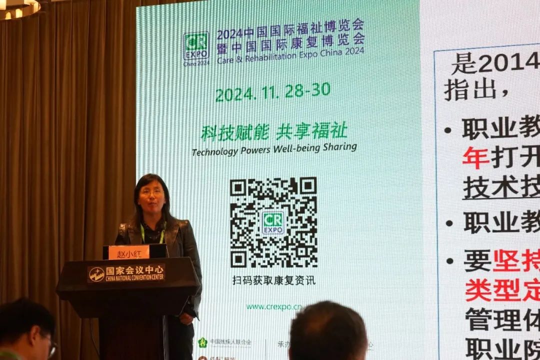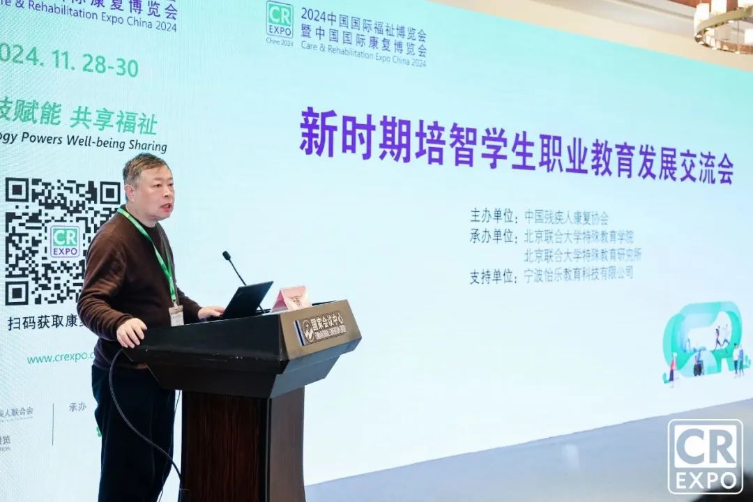 11月29-30日,在2024中國國際福祉博覽會暨中國國際康復博覽會期間,由中國殘疾人康復協(xié)會主辦、特殊教育學院和特殊教育研究所承辦“新時期培智學生職業(yè)教育發(fā)展交流會”成功舉行。此次交流會旨在落實黨的二十大提出的“強化特殊教育普惠發(fā)展”以及“完善重點群體就業(yè)支持體系”、國務院印發(fā)的《“十四五”殘疾人保障和發(fā)展規(guī)劃》中提出“提升殘疾人職業(yè)素質和就業(yè)創(chuàng)業(yè)能力”、國務院辦公廳轉發(fā)《“十四五”特殊教育發(fā)展提升行動計劃》中提出“積極探索設置面向智力殘疾、多重殘疾和孤獨癥等殘疾學生的專業(yè)等文件精神,推動培智學生職業(yè)教育事業(yè)規(guī)范發(fā)展。此次交流會主要分為兩部分內容,29日在國家會議中心進行培智學生職業(yè)教育發(fā)展交流會,30日在特殊教育學院進行培智職業(yè)教育共學活動。
