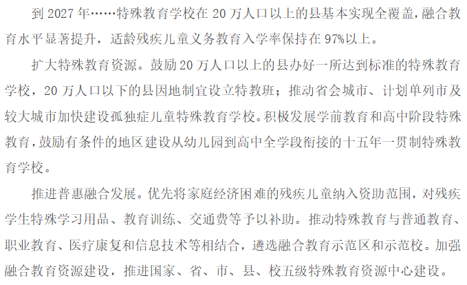 《意見》中提到諸多推動基礎(chǔ)教育發(fā)展的計劃,其中與特殊教育相關(guān)的主要舉措如下:
