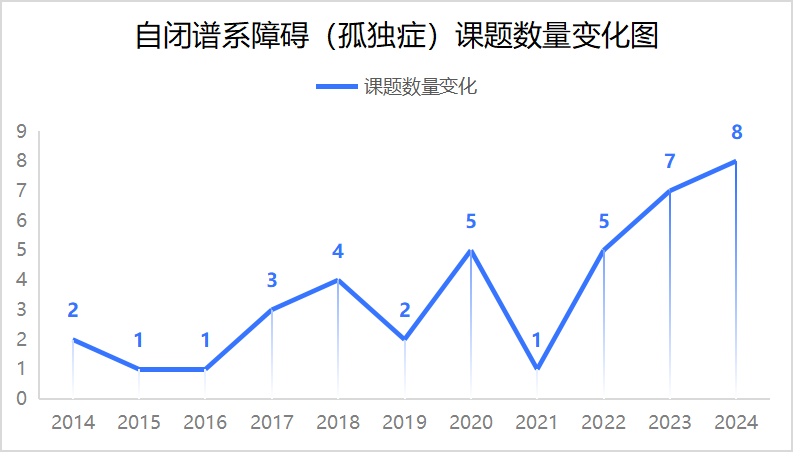 結(jié)合過去 10 年的數(shù)據(jù),自閉譜系障礙(孤獨癥)相關(guān)課題的數(shù)量變化如下: