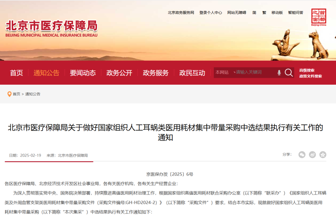 2月20日,廣東省醫(yī)療保障局發(fā)布了《關(guān)于做好國家組織人工耳蝸類及外周血管支架類醫(yī)用耗材集中帶量采購和使用工作的通知》,人工耳蝸、外周血管支架兩類高值醫(yī)用耗材國家集采中選結(jié)果將分階段在廣東全面執(zhí)行,人工耳蝸單套(含植入體、處理器)價格從平均20余萬元降至5萬元左右。