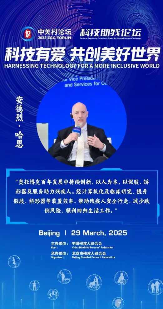 “奧托博克百年發(fā)展中持續(xù)創(chuàng)新、以人為本,以假肢、矯形器及服務(wù)助力殘疾人。經(jīng)計(jì)算機(jī)化及臨床研究,提升假肢、矯形器等裝置效率。幫助殘疾人安全行走、減少跌倒風(fēng)險(xiǎn),順利回歸生活工作。”