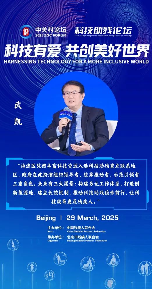 “海淀區(qū)憑借豐富科技資源入選科技助殘重點(diǎn)聯(lián)系地區(qū),政府在此扮演組織領(lǐng)導(dǎo)者、統(tǒng)籌推動(dòng)者、示范引領(lǐng)者三重角色。未來有三大愿景:構(gòu)建多元工作體系,打造創(chuàng)新策源地,建立長(zhǎng)效機(jī)制,推動(dòng)科技助殘穩(wěn)步前行,讓科技成果惠及殘疾人。”