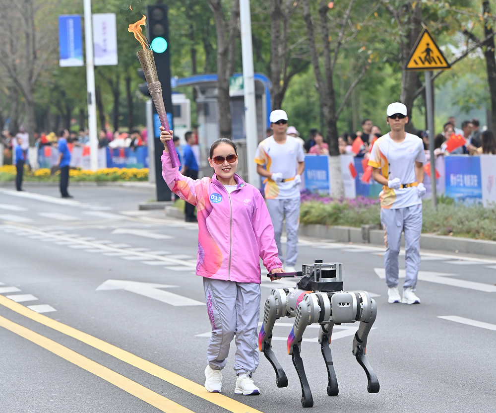 宇樹科技旗下另一款智能四足機器人B1也可輔助盲人便捷出行。其搭載最新的雷達與視覺技術(shù),擁有高精度的環(huán)境感知與精準的導航能力,環(huán)境適應(yīng)性強,能夠自主避障,進行路況的實時調(diào)整。同時也能通過語音的方式提醒用戶,從而保障用戶的安全出行。宇樹B1也在杭州第四屆亞殘運會的火炬?zhèn)鬟f儀式上擔任了火炬手蔡瓊卉的電子導盲犬,B1機器狗也成功引領(lǐng)蔡瓊卉進行了火炬?zhèn)鬟f,為她提供了穩(wěn)定的支持。