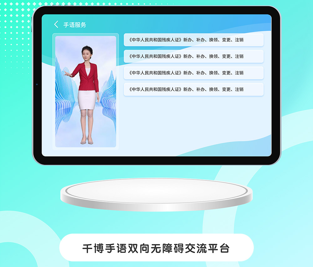 此外,千博信息旗下的千博AI手語也是目前全國唯一一套人工智能手語翻譯系統(tǒng),可應(yīng)用在公共服務(wù)、特殊教育等各種領(lǐng)域,方便聽障人士的日常生活。