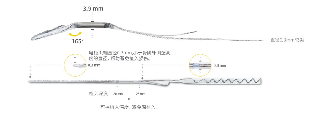 奧地利MED-EL人工耳蝸,植入體主要有可兼容3.0T核磁檢查的SONATA、SYNCHRONY系列以及輕薄小巧的CONCERTO系列,聲音處理器則包含RONDO2、SONNET、OPUS2 XS系列,電極則有標準軟電極、超軟電極,長度范圍大致為15.5mm—34mm,可根據(jù)不同耳蝸進行調(diào)整。其中SYNCHRONY人工耳蝸系統(tǒng)擁有豐富的電極種類及長度,可個性化匹配耳蝸,同時也無需取出磁鐵便可進行3.0T核磁共振掃描。