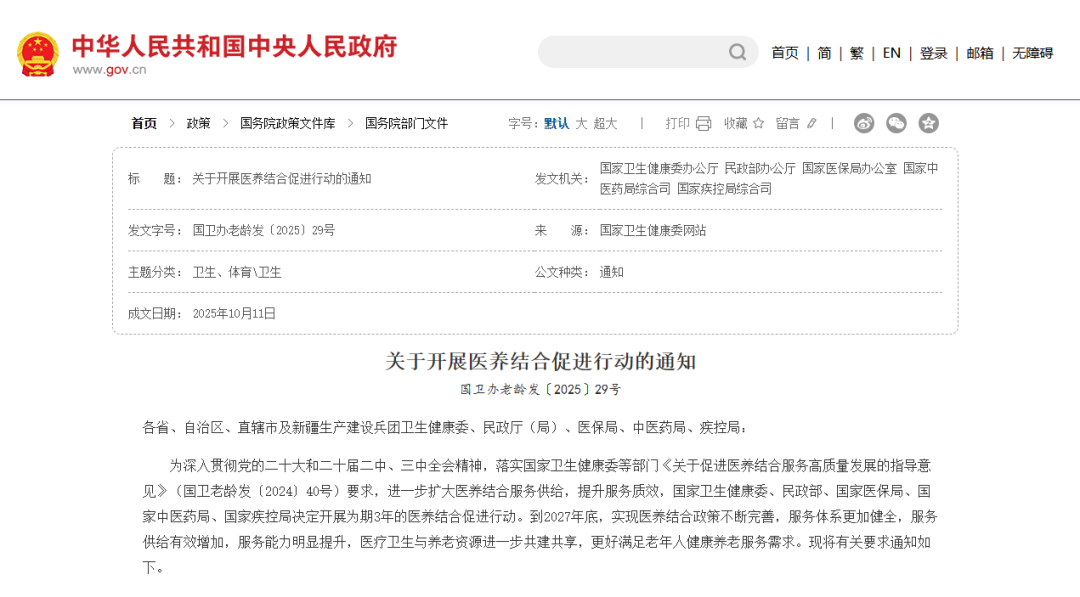 五部門發(fā)文:開展醫(yī)養(yǎng)結(jié)合促進行動