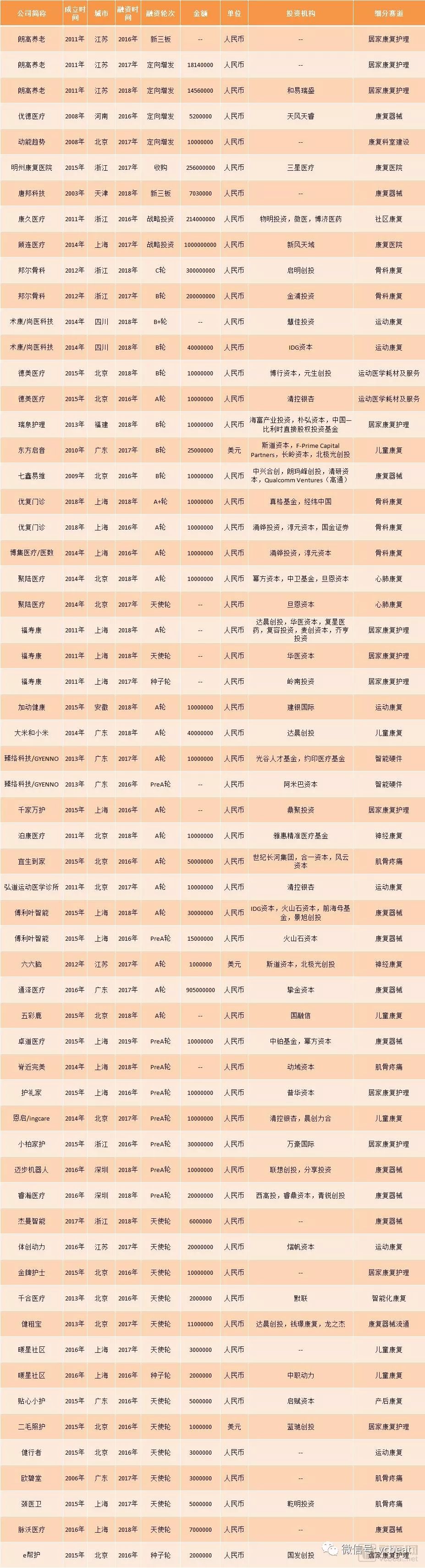 通過對(duì)數(shù)據(jù)的統(tǒng)計(jì)分析以及對(duì)康復(fù)領(lǐng)域有所涉獵的投資機(jī)構(gòu)的訪談,我們大致可以從中看出一些現(xiàn)實(shí)和趨勢(shì),供大家探討。