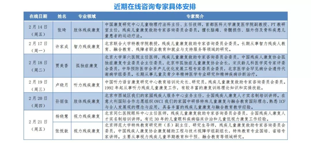 為切實做好疫情防控工作,幫助廣大殘疾兒童居家開展康復訓練,中國殘聯(lián)將于2月14日開設“抗擊疫情 殘疾兒童康復專家在線咨詢”專欄,邀請康復領(lǐng)域具有豐富實踐經(jīng)驗的專家在線為殘疾兒童家長提供專業(yè)解答。