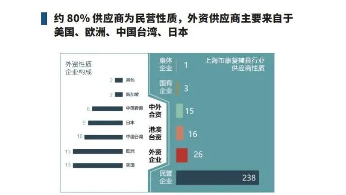 通過(guò)線下調(diào)研和線上企業(yè)信息數(shù)據(jù)庫(kù)的檢索,將上海市康復(fù)器具協(xié)會(huì)成員單位、在上海市注冊(cè)且主營(yíng)業(yè)務(wù)為康復(fù)輔具的企業(yè)、在上海市注冊(cè)且持有輔具專利等345家企業(yè)信息納入本次統(tǒng)計(jì)范圍,其中包括299家康復(fù)輔具供應(yīng)商和46家康復(fù)輔具服務(wù)企業(yè)。
