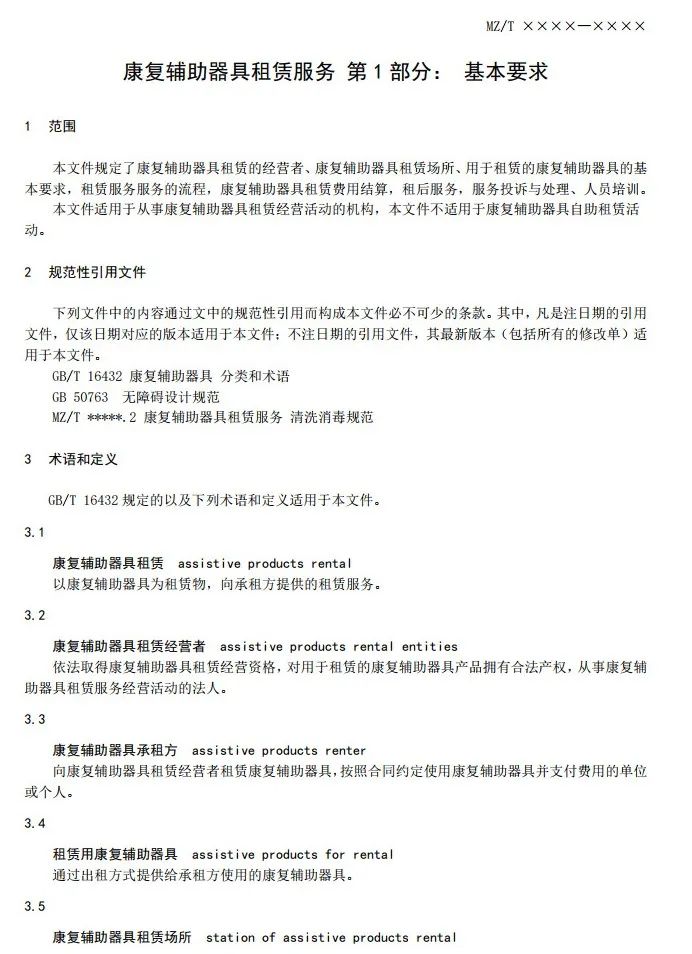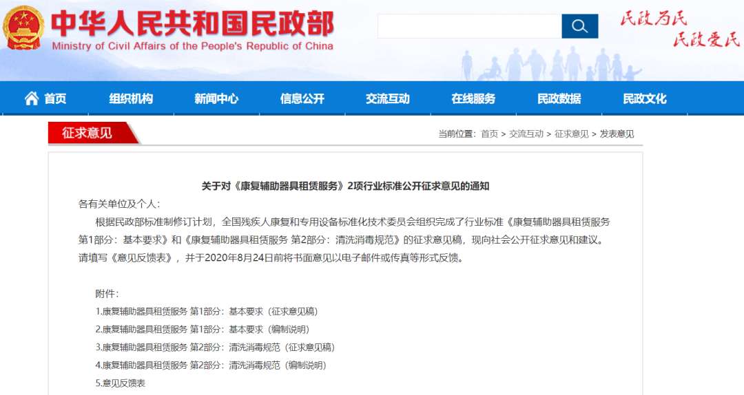 昨日下午,民政部網站最新發(fā)布了《康復輔助器具租賃服務 第1部分:基本要求》和《康復輔助器具租賃服務 第2部分:清洗消毒規(guī)范》行業(yè)標準征求意見稿。